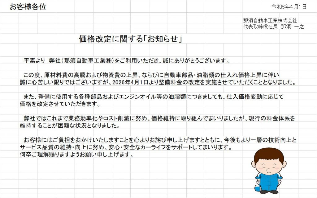 2026年4月より価格改定を実施させていただくこととなりました。
