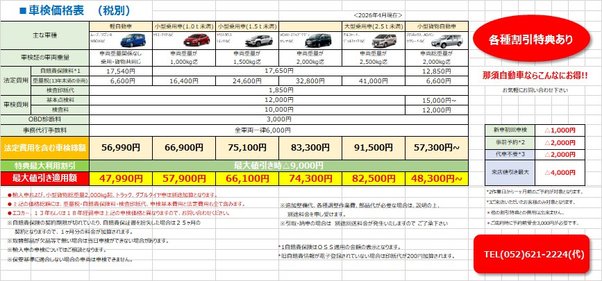 2026年4月より車検を受ける際の印紙代が変更となりました。